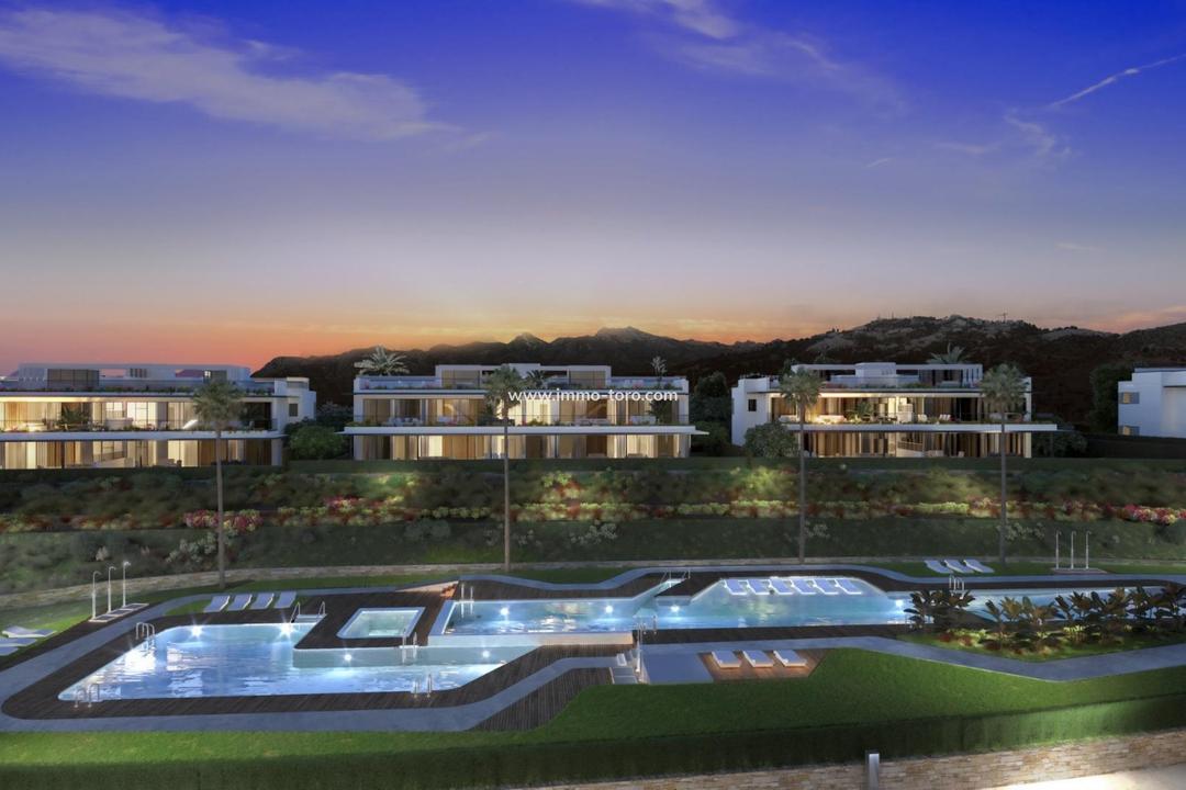 Gated frontline golf development, on gentle hills in the outskirts of Marbella.